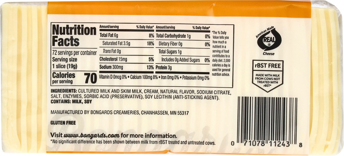 Bongards Premium White American Cheese 72 Slices