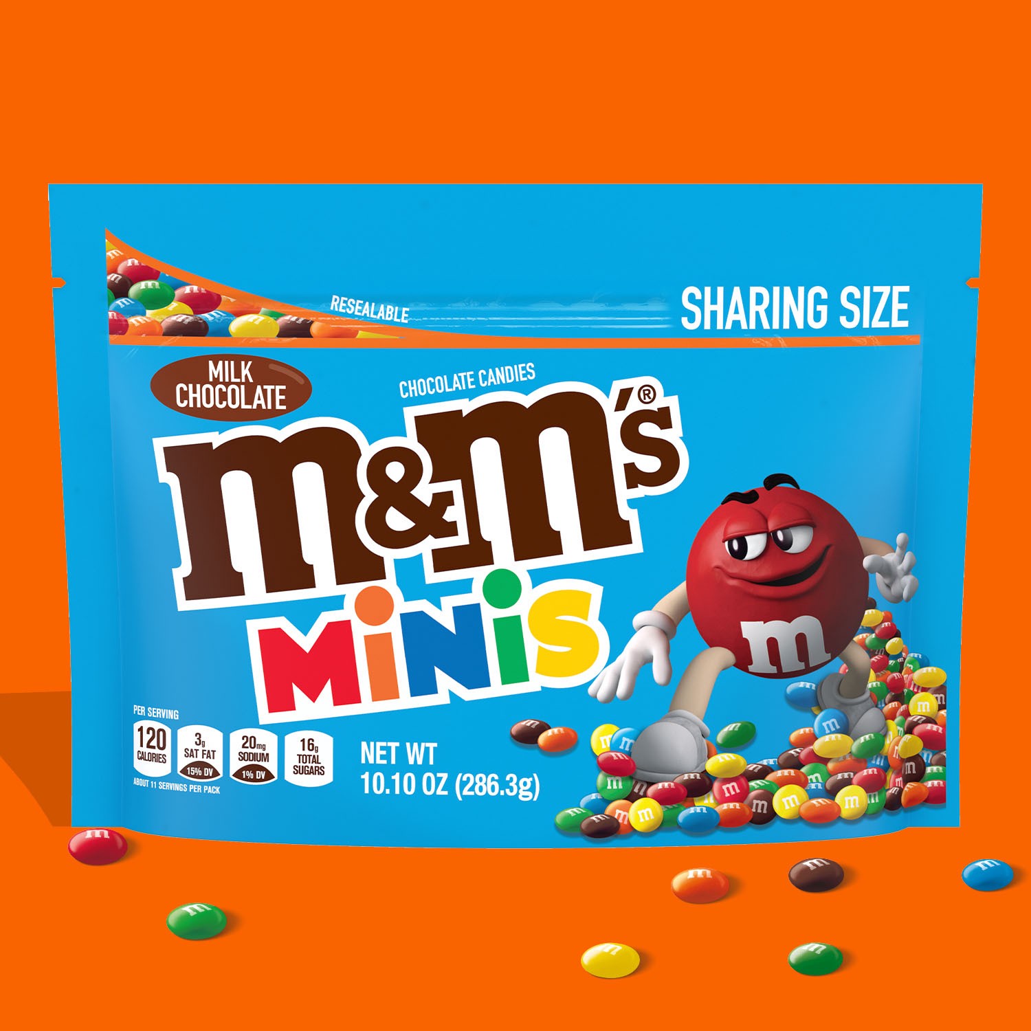 - Contains one (1) 10.1-ounce bag of M&M'S MINIS Milk Chocolate CandyEnjoy a timeless and miniature treat that's made with real milk chocolate and surrounded by a colorful candy shellUse M&M'S Chocolate Candy for baking or decorating cookies