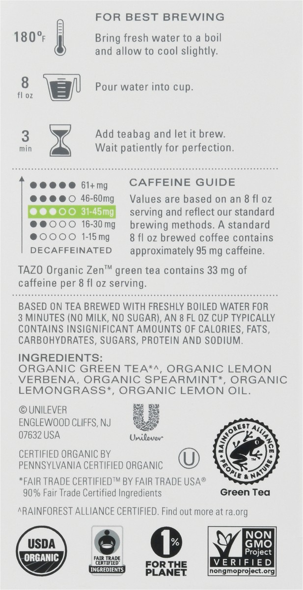 slide 1 of 12, Tazo Organic Zen Tea Bag - 16 Count, 16 ct