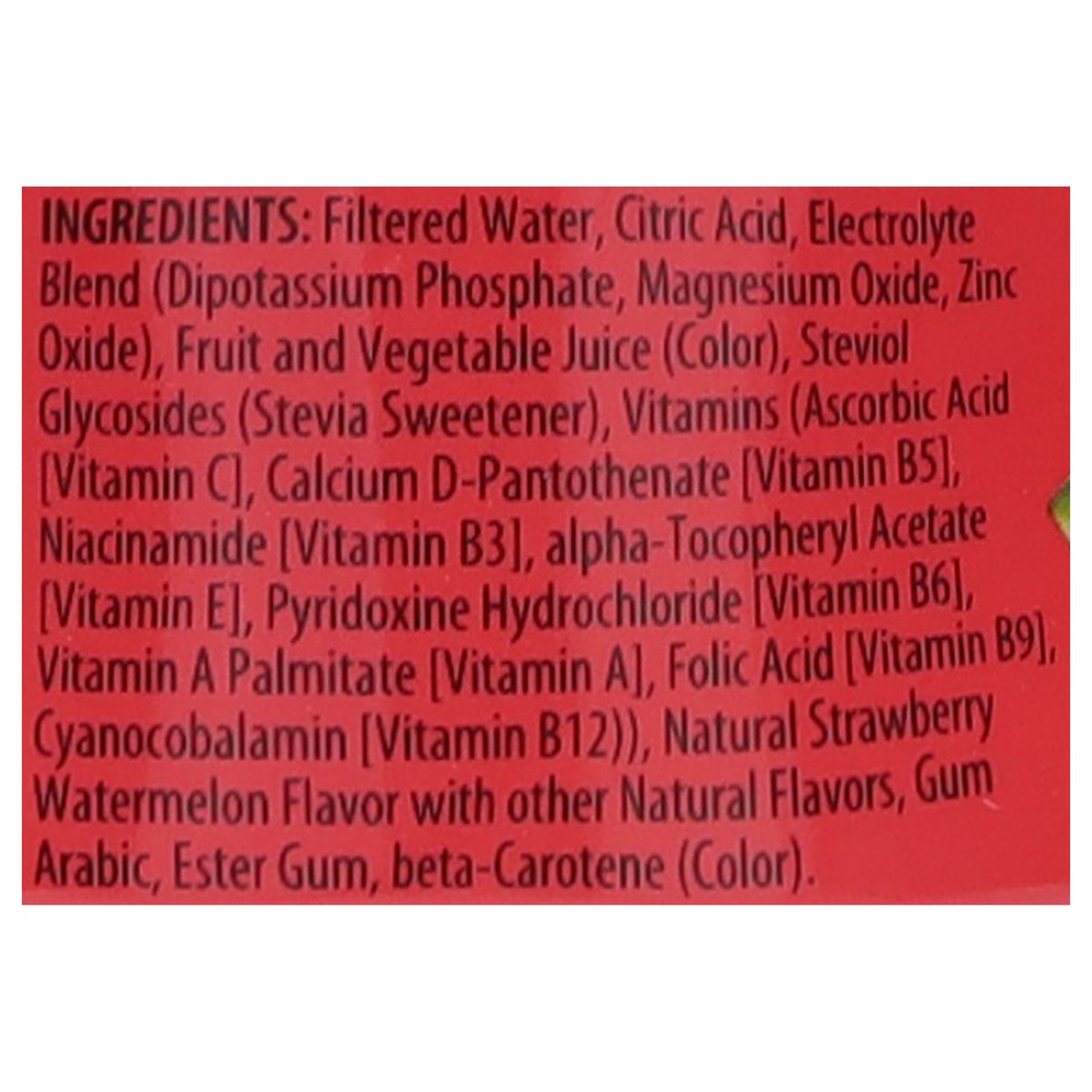Filtered Water, Citric Acid, Electrolyte Blend (Dipotassium Phosphate, Magnesium Oxide, Zinc Oxide), Fruit and Vegetable Juice (Color), Steviol Glycosides (Stevia Sweetener), Vitamins (Ascorbic Acid […