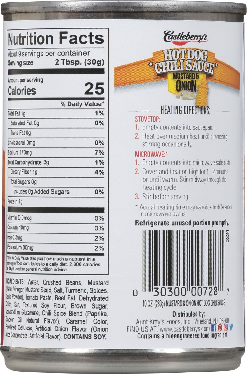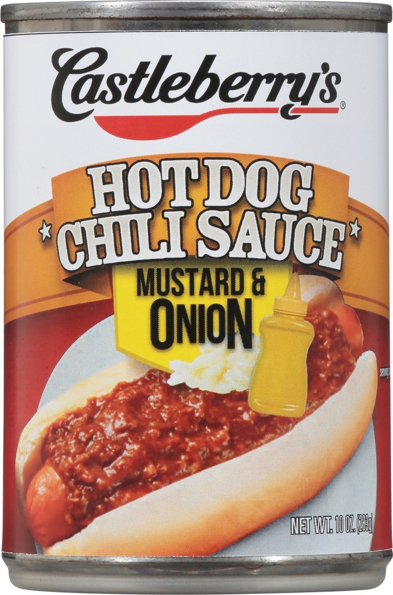 Castleberry's Chili Sauce, Hot Dog, Mustard & Onion