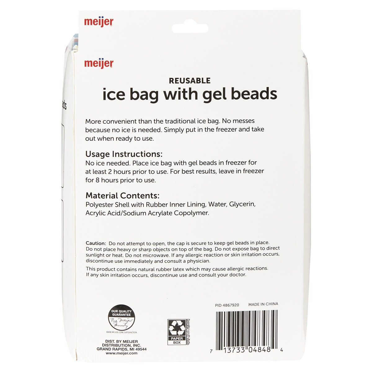 MEIJER ICE BAG WITH GEL BEADS