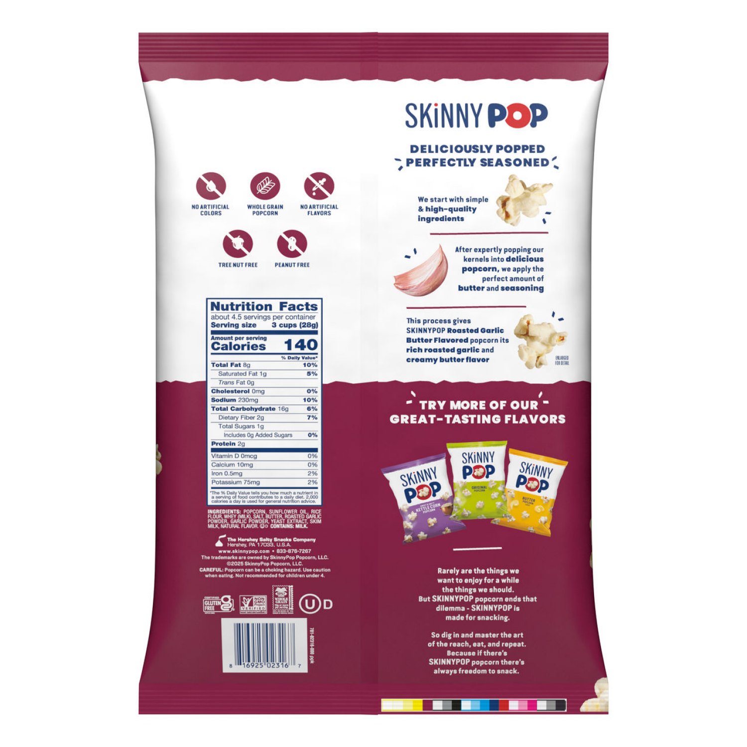 SKINNYPOP roasted garlic butter flavored popcorn is popular for a reason! With 140 calories per serving, this delightfully savory, crunchy treat just might be the perfect snack. Take SKINNYPOP popcorn…