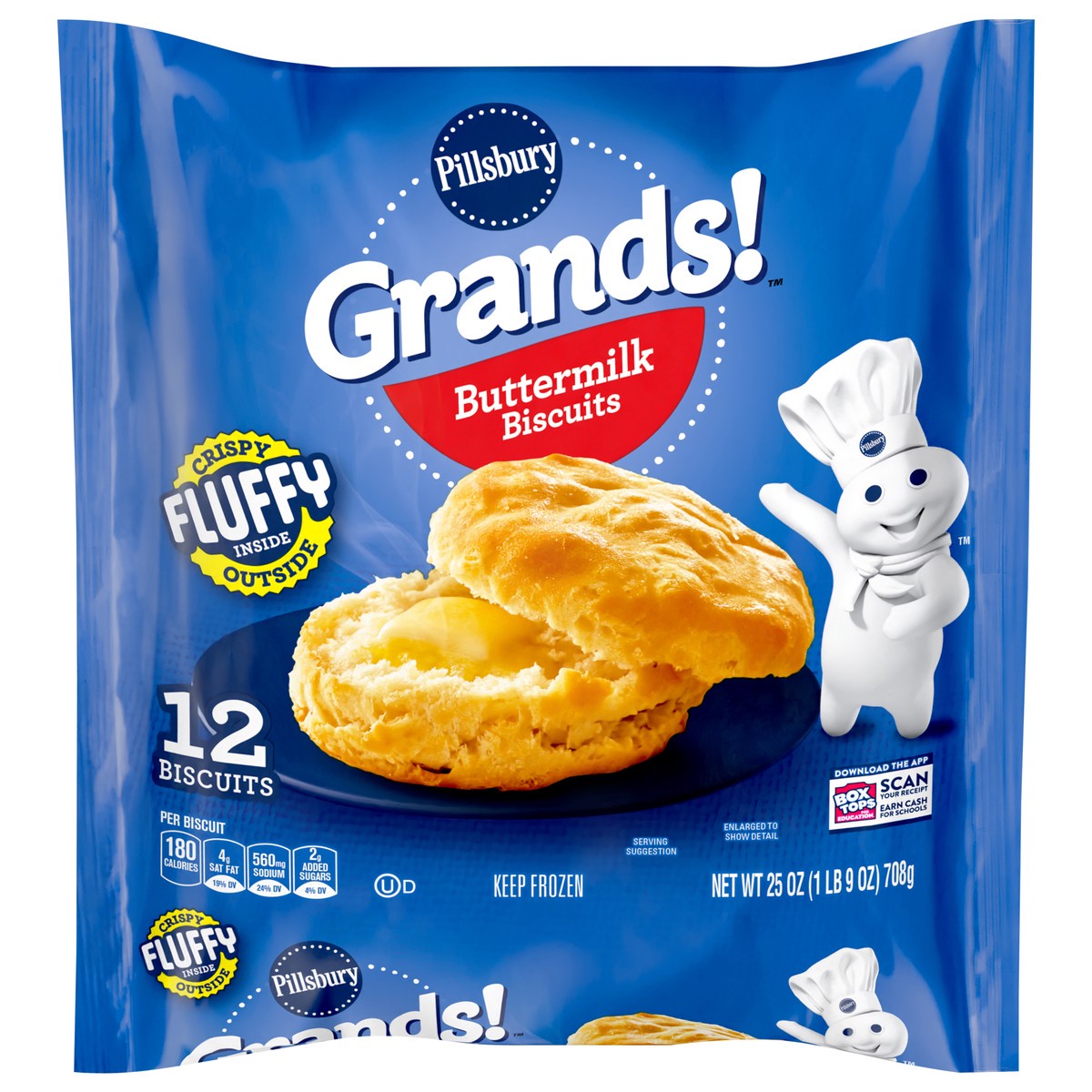 Pillsbury Grands! Buttermilk Breakfast Biscuits Frozen Dough, 25 oz/ 12 count.