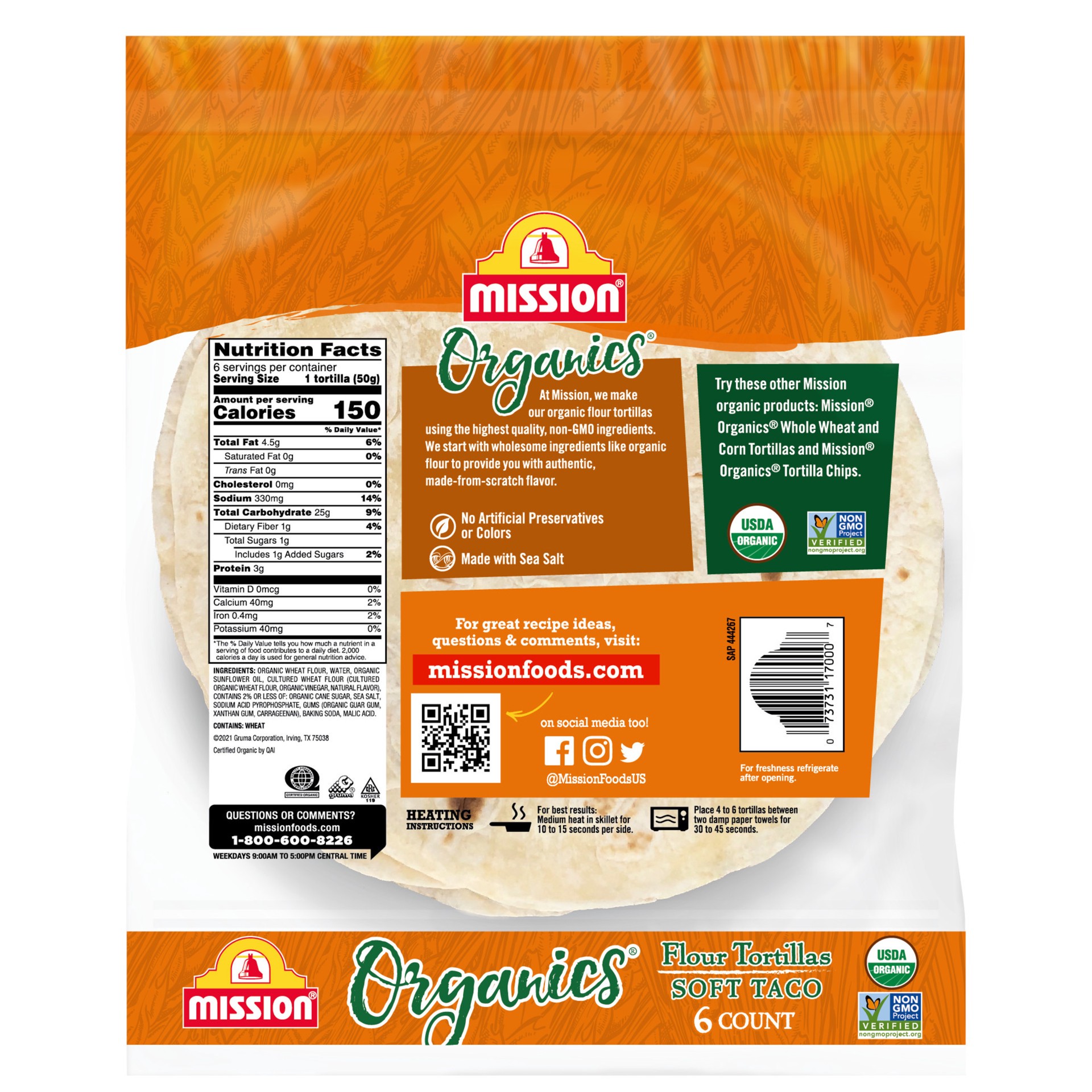 Mission Organics Flour Tortillas Soft Taco Size - 6 Count