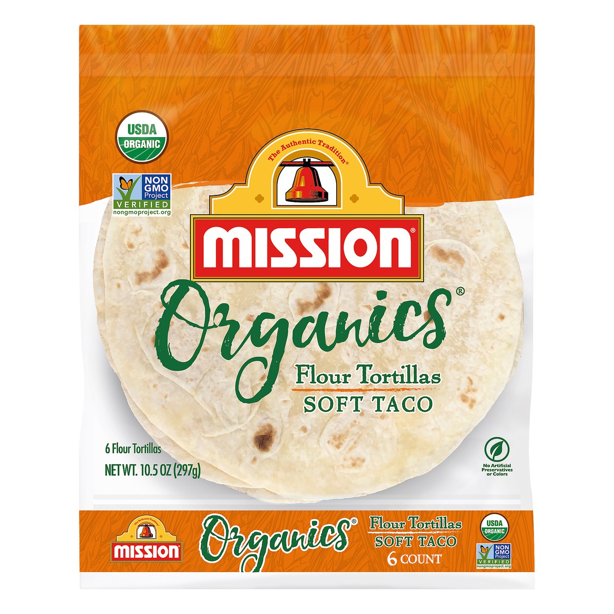- One 6-count package of Mission Organics Soft Taco Flour Tortillas