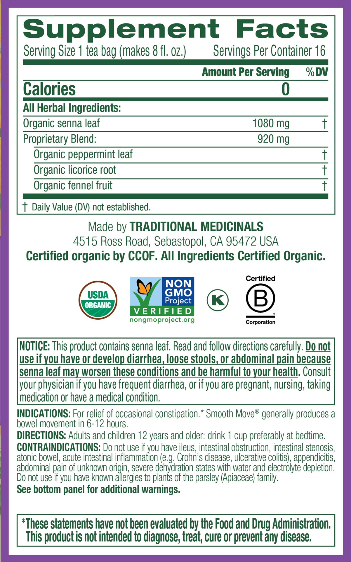 Organic senna leaf, Organic peppermint leaf, Organic licorce root, Organic fennel fruit