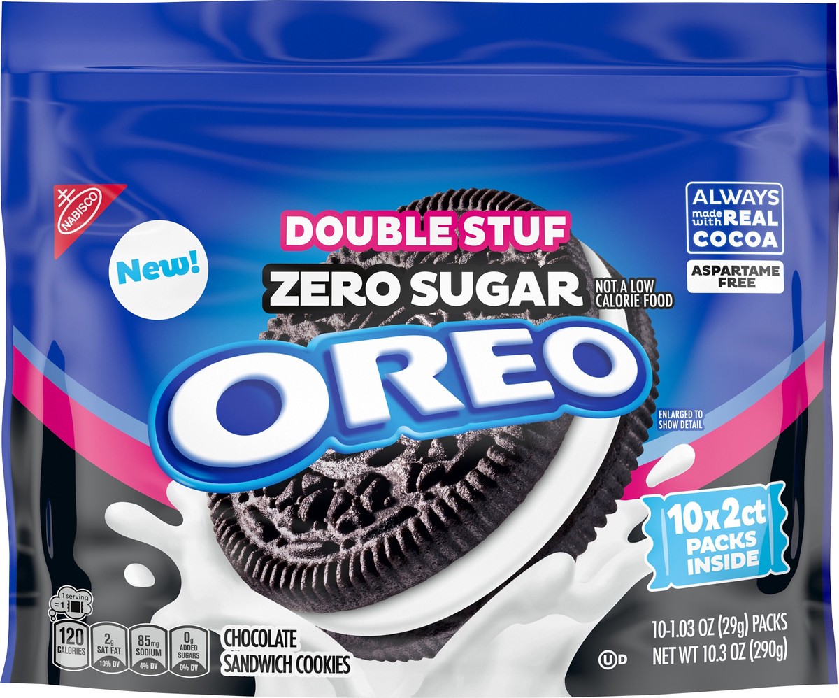Enjoy the classic OREO cookie taste, minus the sugar, with OREO Double Stuf Zero Sugar* Chocolate Sandwich Cookies. Delicious with or without milk, these sugar-free* OREO chocolate cookies are stuffed…