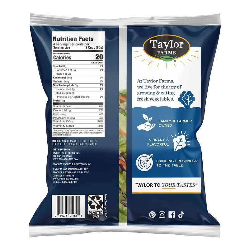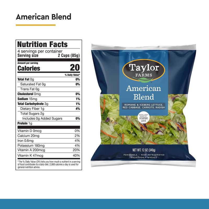 Taylor Farms American Salad satisfies your patriotic spirit with this mix of radish, red cabbage, carrot, iceberg and romaine lettuce. Fresh and ready to eat, this salad is ideal for hot summer days a…