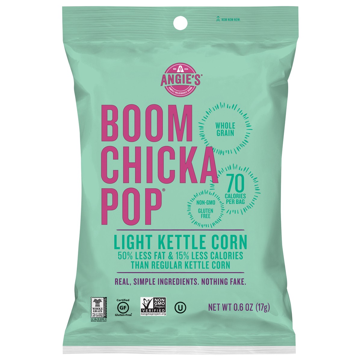 Dig into a bag of Angie's BOOMCHICKAPOP Light Kettle Corn Popcorn. Imagine you're at the state fair, but the kettle corn has 70 calories per bag and 0 grams trans fat per serving. That's pretty darn a…