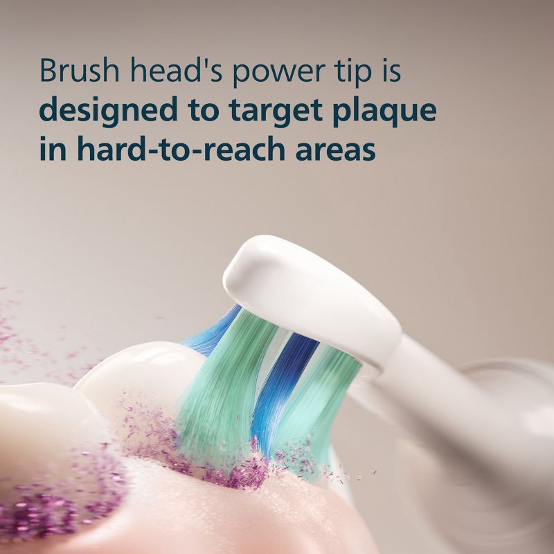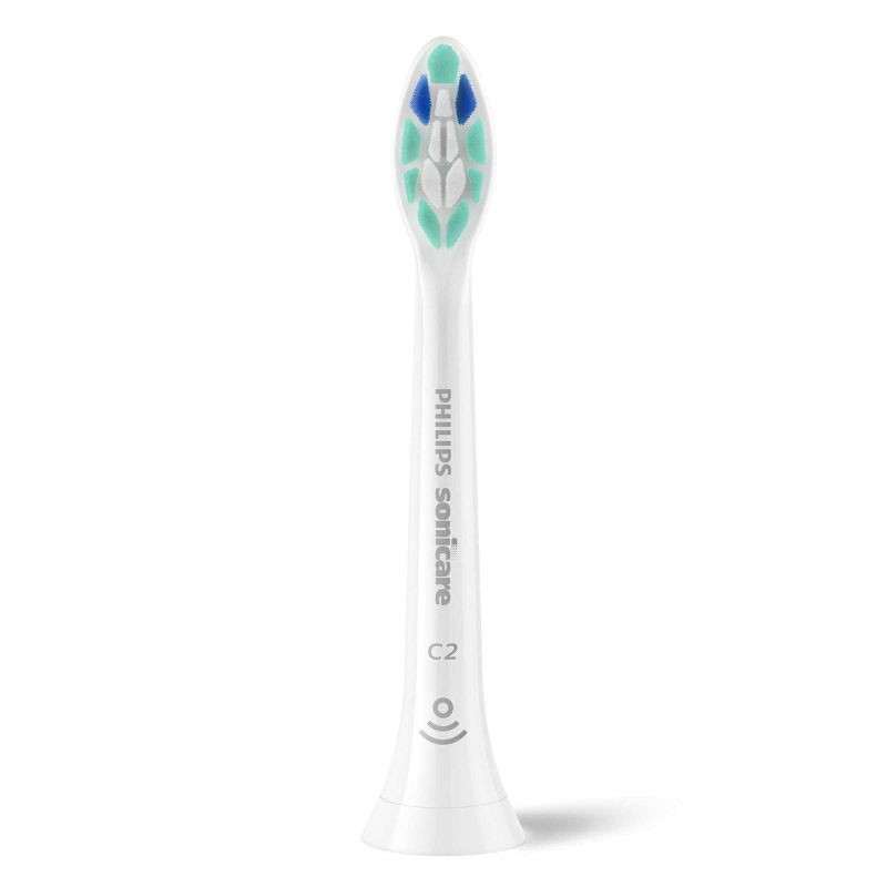 - Philips Sonicare C2 Plaque Control brush head's power tip is designed to target plaque in hard-to-reach areas; these electric toothbrush heads remove up to 700% more plaque than a manual toothbrush