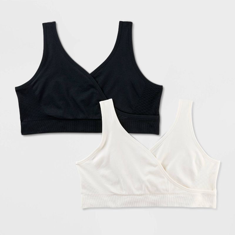 Women's 2pk Nursing Unlined V-Neck Bralette - Auden™ Black/White XL