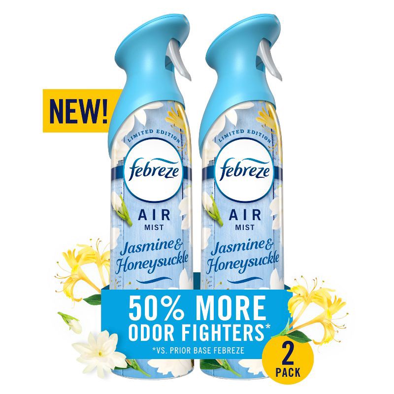Febreze Odor-Fighting Air Freshener Jasmine & Honeysuckle - 2ct: Aerosol, Non-Powered