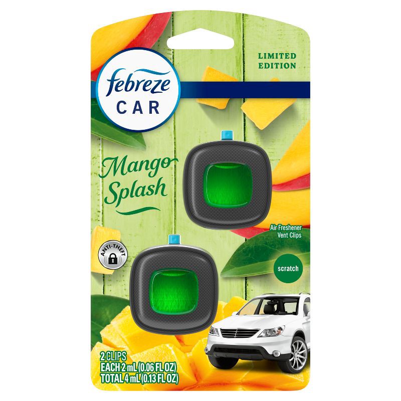 Febreze Car Air Freshener Vent Clip Mango Splash - 2ct: Oil, Non-Powered