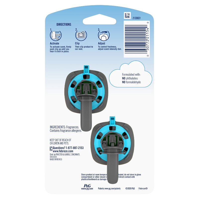 - Stay fresh with up to 40 days of consistent scent with Febreze Car Vent Clips (on low)