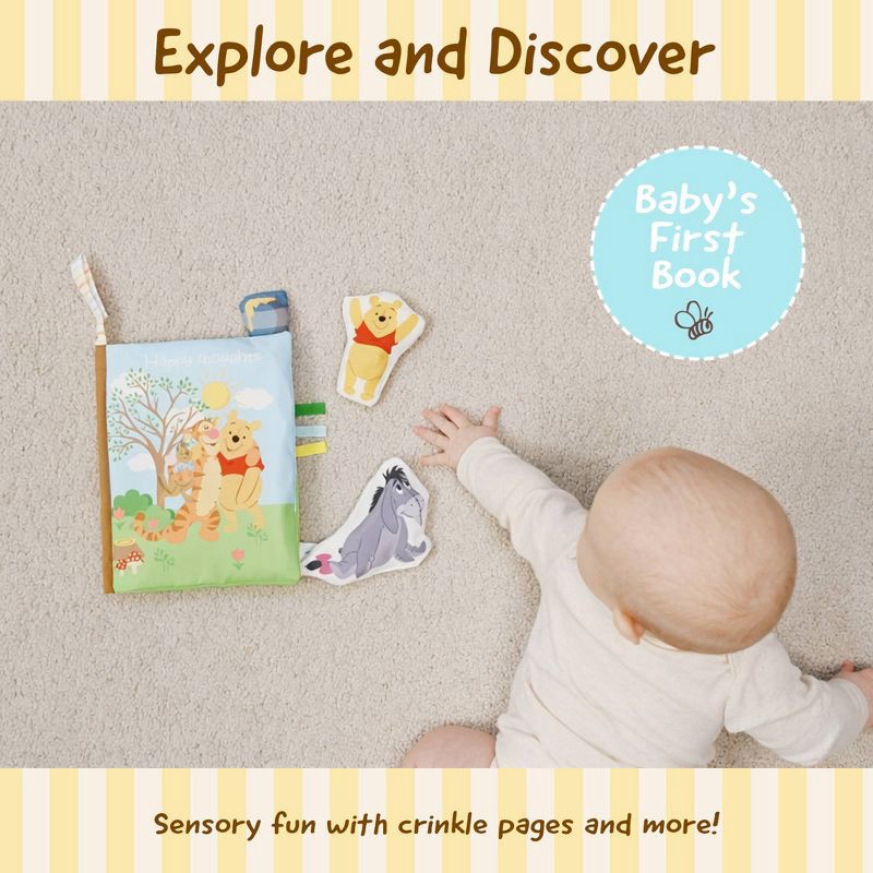 Disney Baby Winnie the Pooh Deluxe Soft Book Happy Thoughts with Removable Characters Plush Toys - 3pc: Sensory Development, Lift-Up Flaps, BPA-Free