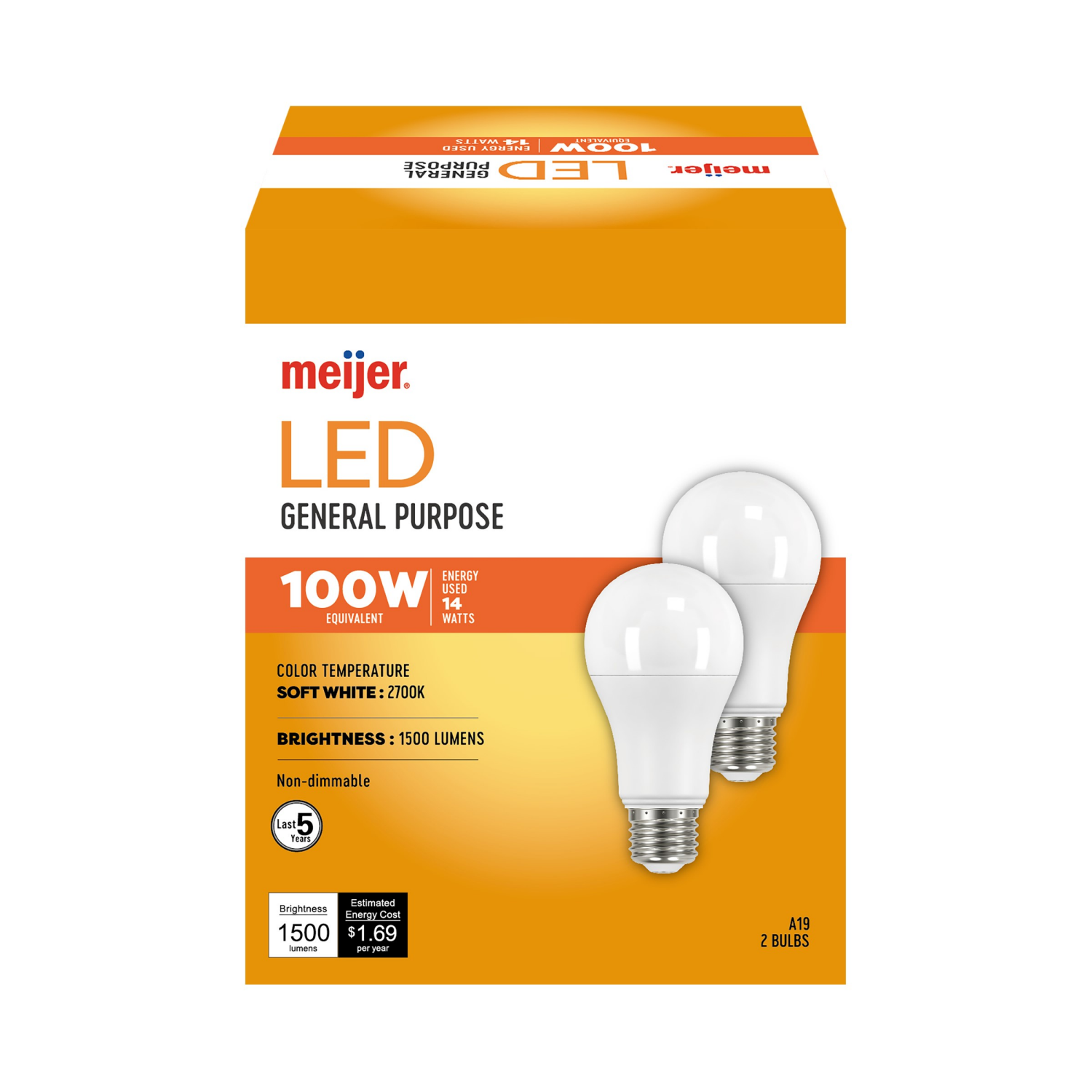 Meijer Mjr Led 14w A19 5500 Hr Soft Wh 100w 2pk
