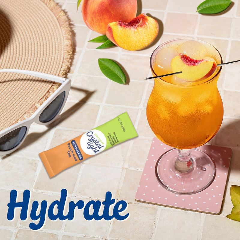 - ICED TEA MIX: 6 pitcher packets of Crystal Light Peach Iced Tea artificial flavor Made with Black Tea Powdered Drink Mixes