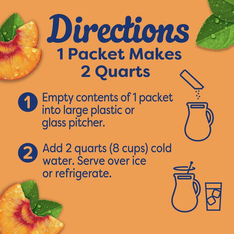 - PITCHER DRINK MIX: One pre-portioned powder drink mix packet makes 2 quarts of peach iced tea