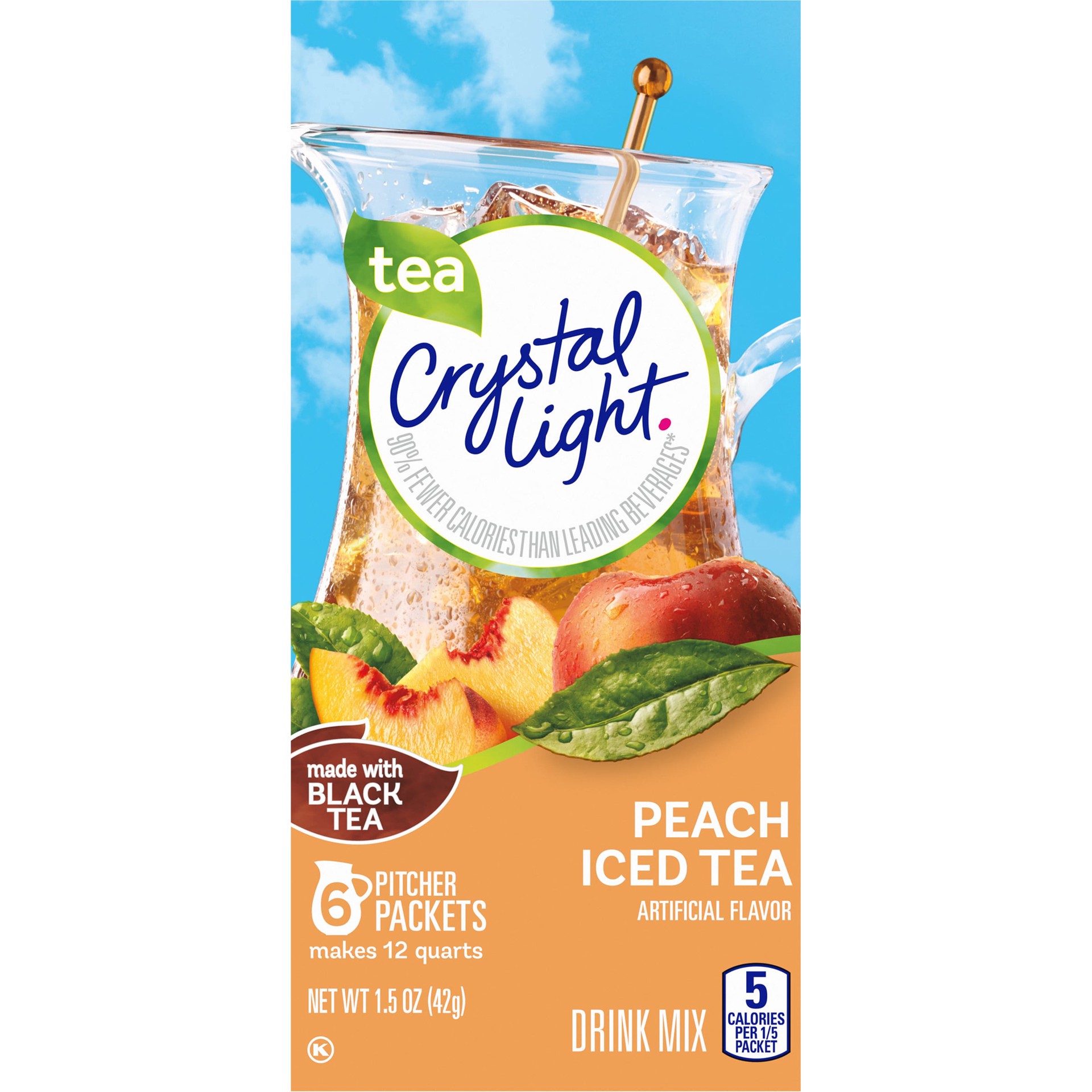 Crystal Light Artificially Flavored Peach Iced Tea Powdered Drink Mix is a refreshing beverage you can enjoy at any time of day. With zero grams of sugar and only 5 calories per serving, Crystal Light…
