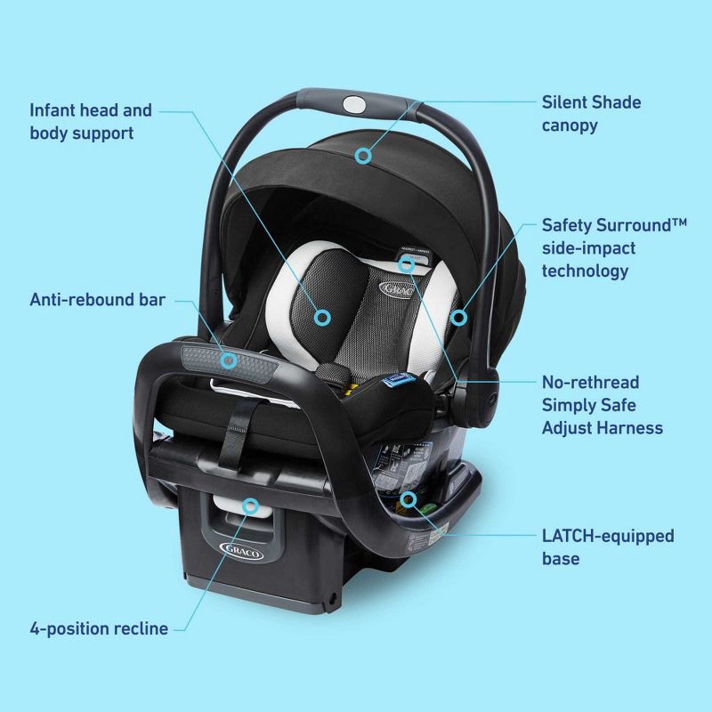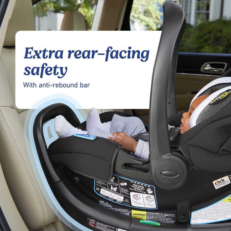 Graco SnugRide SnugFit DLX Infant Car Seat features an Anti-Rebound Bar, which provides an additional layer of rear-facing safety by limiting rotation of the seat and your child in the event of an imp…