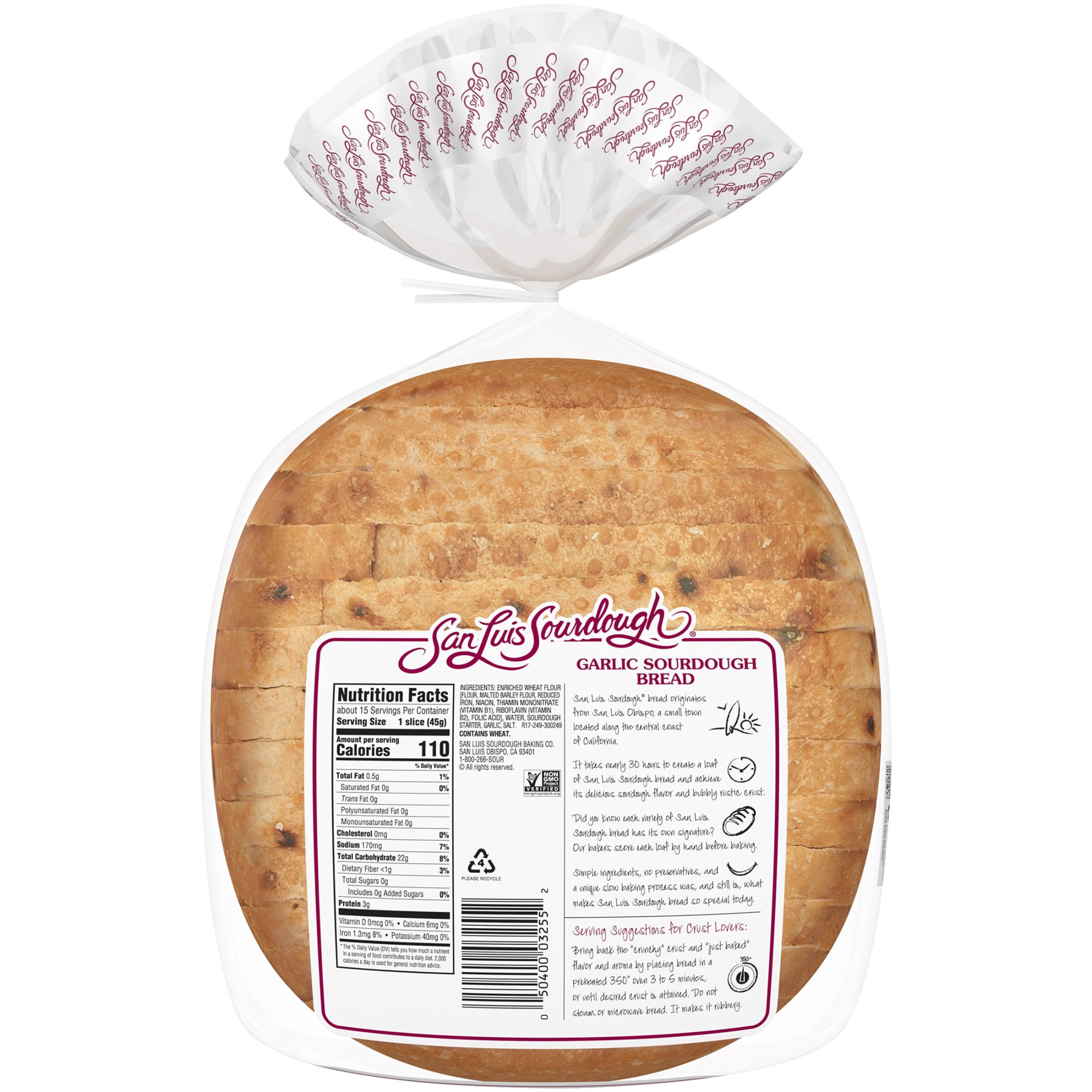 Enriched Wheat Flour [Flour, Malted Barley Flour, Reduced Iron, Niacin, Thiamin Mononitrate (Vitamin B1), Riboflavin (Vitamin B2), Folic Acid], Water, Sourdough Starter, Garlic, Salt.