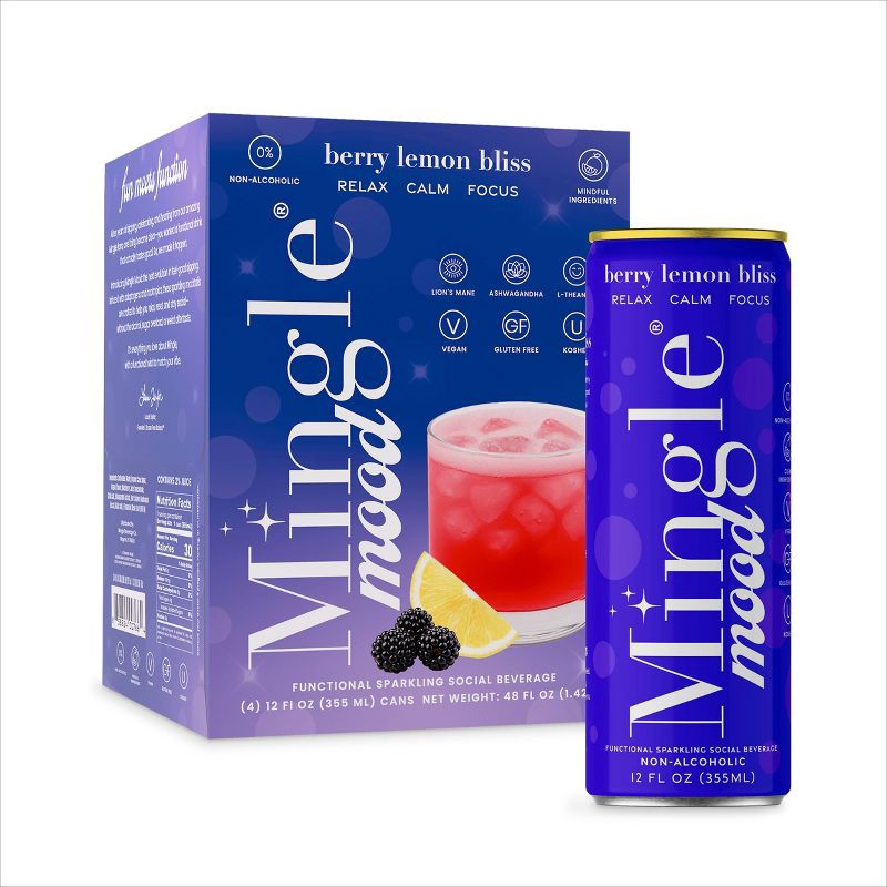 Mingle Mood is a sparkling functional beverage with adaptogens and nootropics, designed to help you relax, unwind, and stay clear-headed. Berry Lemon Bliss is bright and has juicy layers of sparkling …