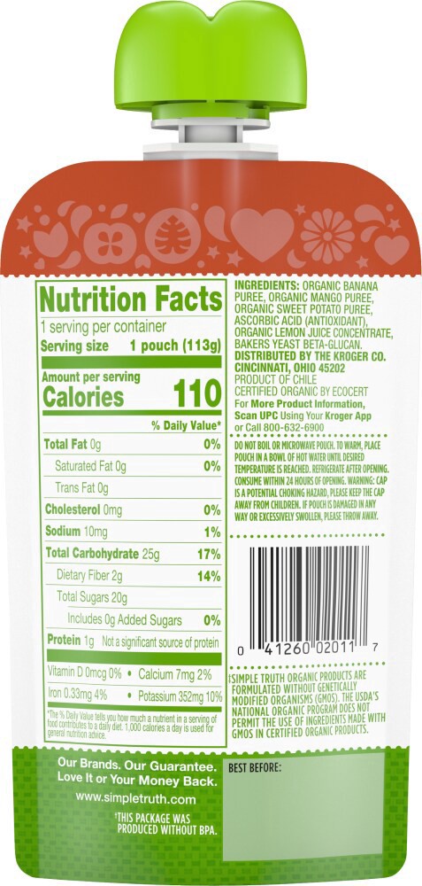 Simple Truth Organic Stage 4 Immune Support Banana Mango Sweet Potato Baby Food Pouch