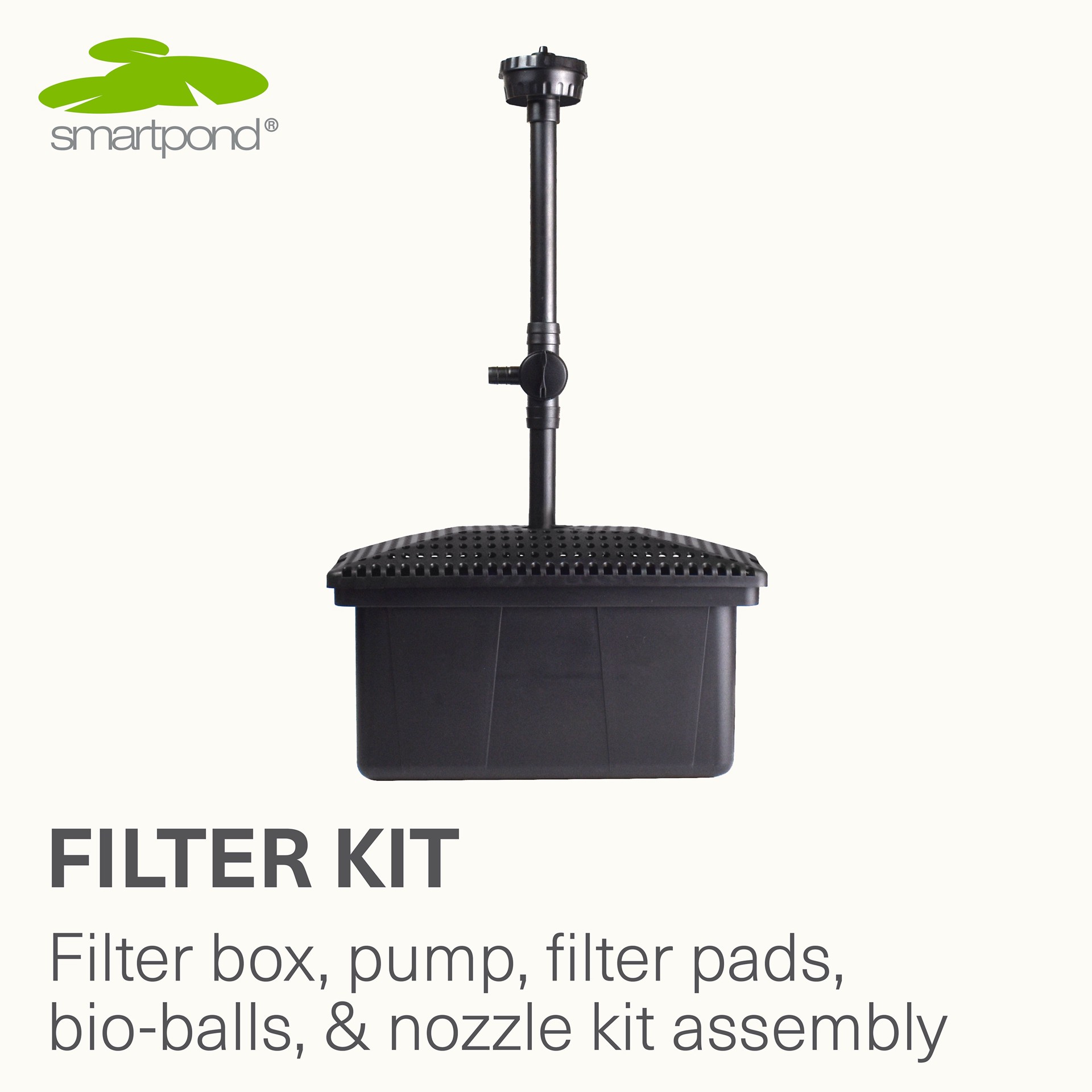 The smartpond Filter Kit with Pump can be easily added to any existing pond or used for a quick weekend new pond project!. This all-inclusive kit includes all the needed components to make this perfec…