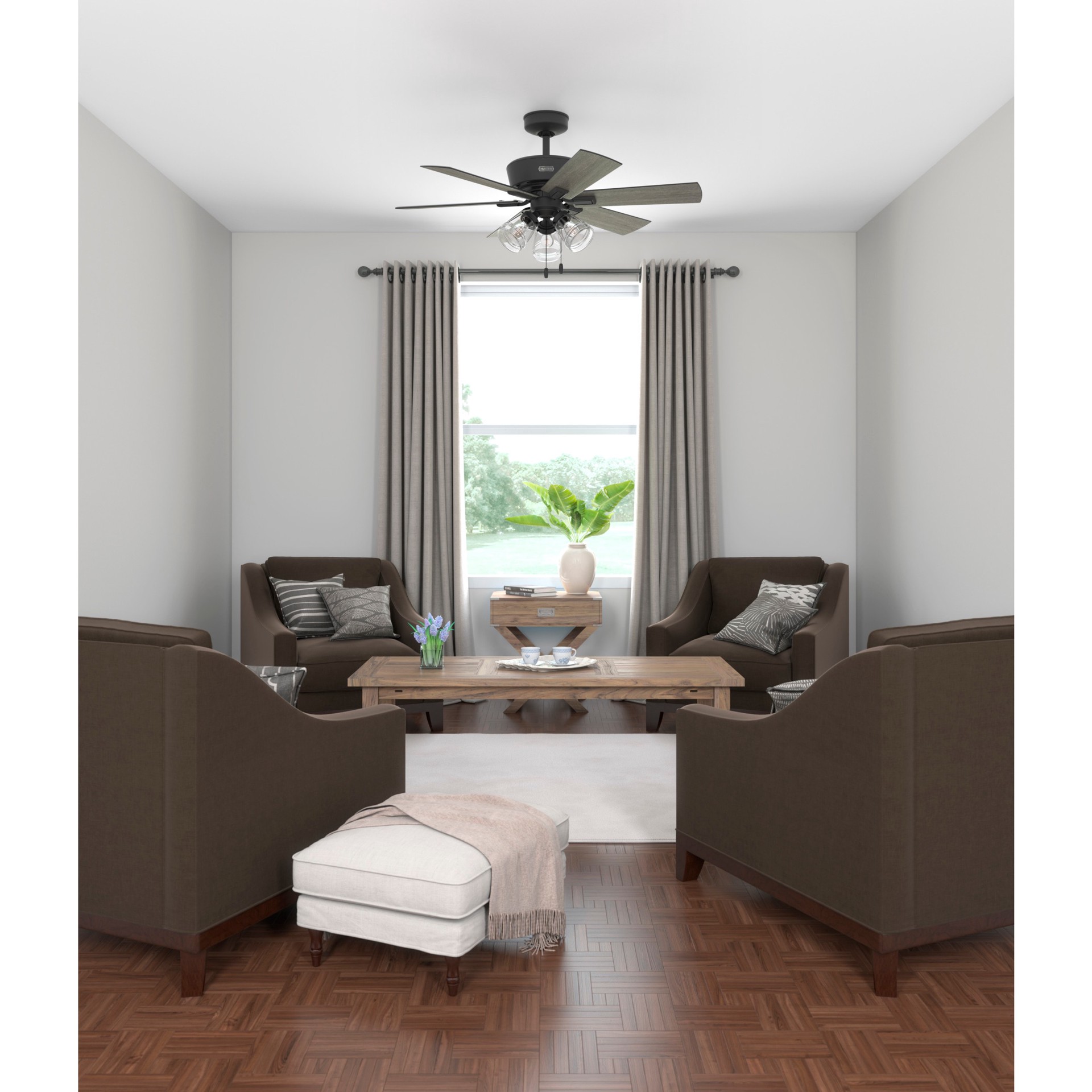 Hunter Pickens 44-in Matte Black with Dark Gray Oak/Matte Black Blades Ceiling Fan With Light and Pull Chain Included 6 -Blade