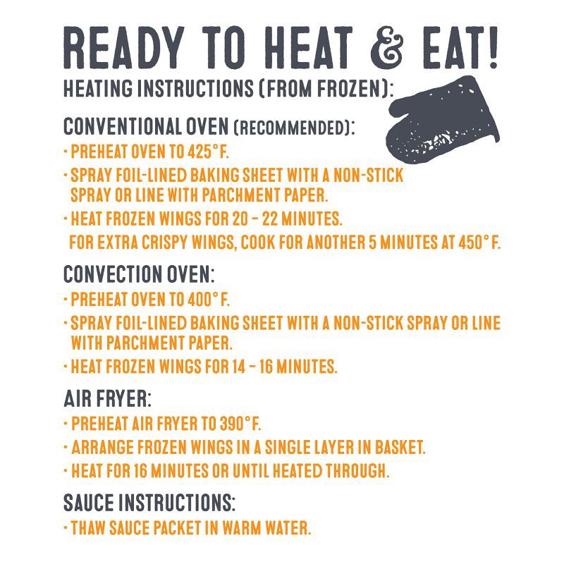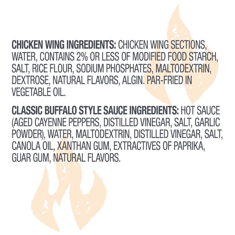 - Classic buffalo style sauce packets included