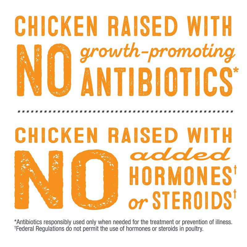 - Chicken raised with no antibiotics ever