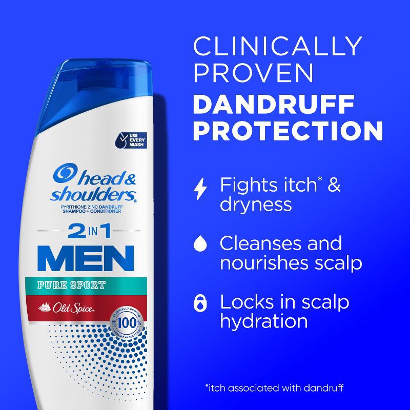 Head & Shoulders Men's Anti-Dandruff Treatment, Old Spice Pure Sport for Daily Use, Paraben-Free, 2-in-1 Shampoo and Conditioner - 20.7 fl oz