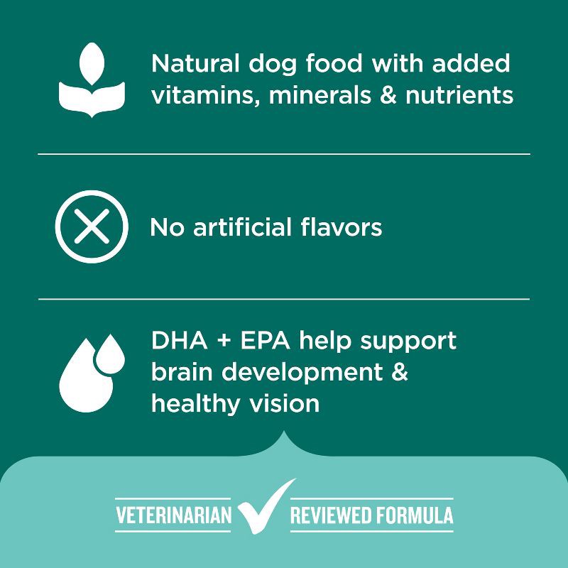 - NATURAL DOG FOOD: Natural food with added vitamins, minerals & nutrients for your dog's daily meals. Made with no artificial flavors, it offers real taste that dogs love