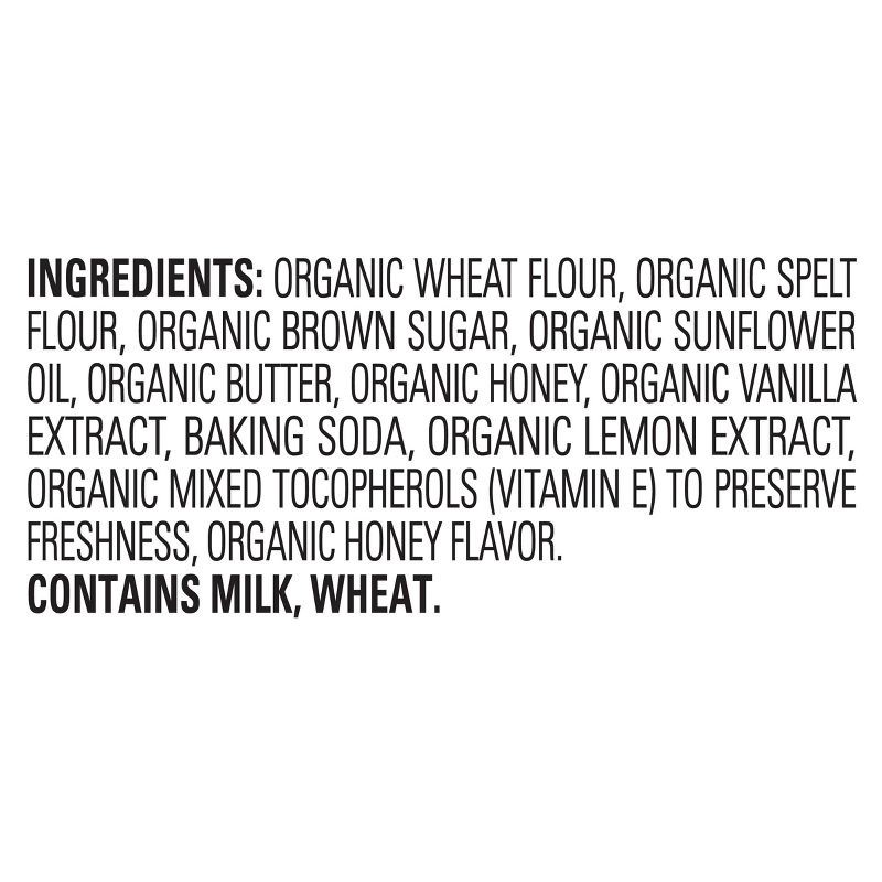 Organic Wheat Flour, Organic Spelt Flour, Organic Brown Sugar, Organic Sunflower Oil, Organic Butter, Organic Honey, Organic Vanilla Extract, Baking Soda, Organic Lemon Extract, Mixed Tocopherols (Vit…