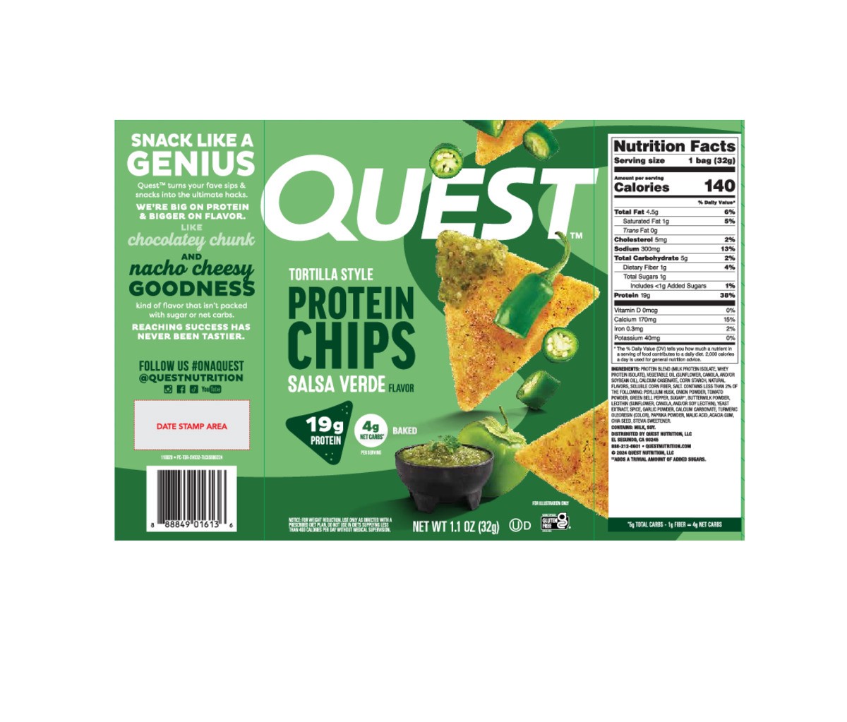 Snack like a genius. Quest turns your fave sips and snacks into the ultimate hacks. Big on protein and bigger on salsa verde flavor, these tortilla-style chips aren't packed with sugar or net carbs. G…