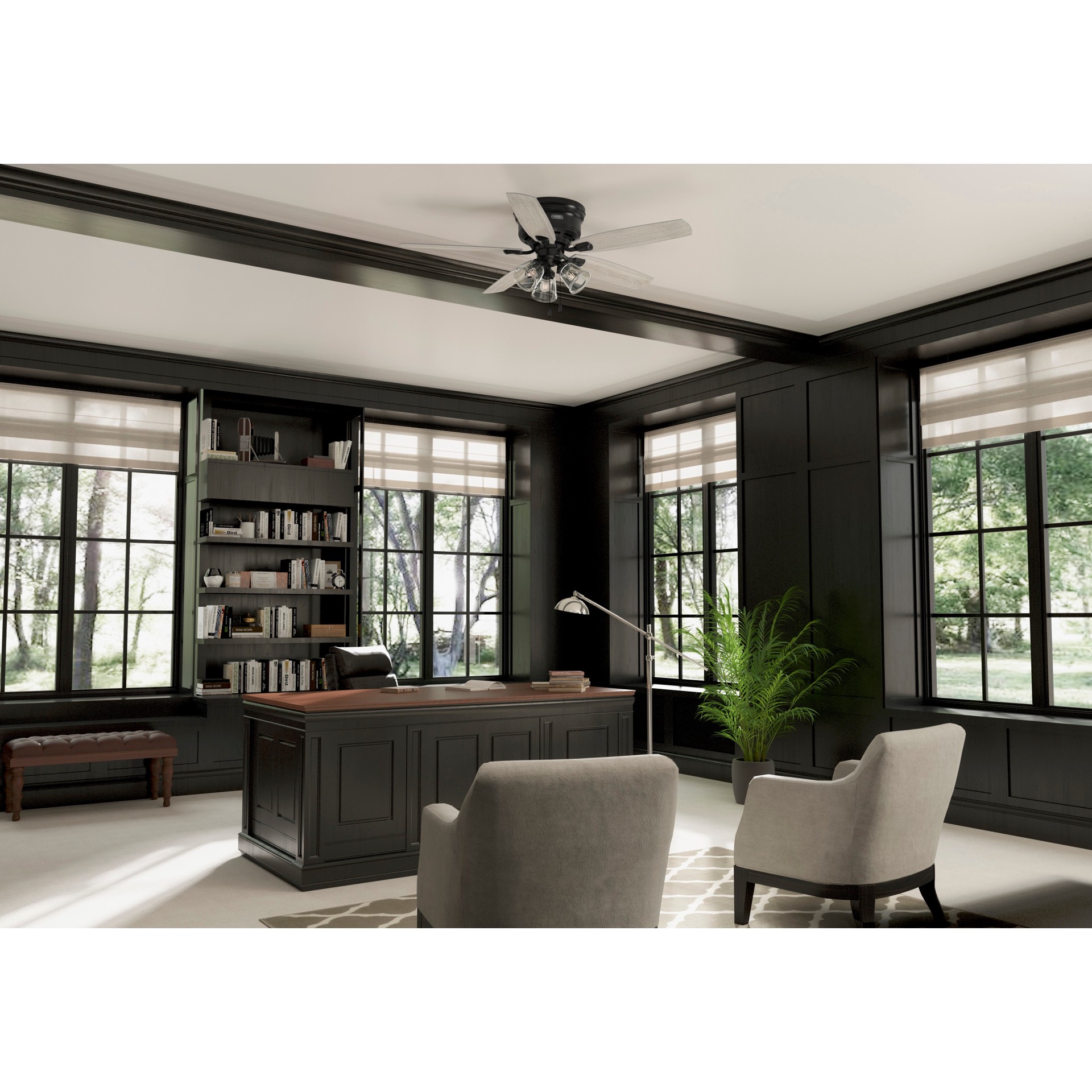 Hunter Kennewick 52-in Matte Black with Light Gray Oak Blades Flush Mount Ceiling Fan With Light and Pull Chain Included 5 -Blade