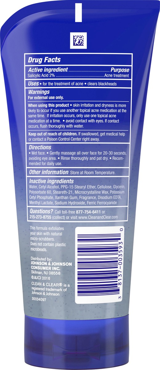 - Clean & Clear Blackhead Eraser Oil-Free Facial Scrub with salicylic acid acne medicationExfoliating daily facial cleanser helps gently exfoliate surface skin with natural micro-scrubbersIts unique formula lifts away dirt