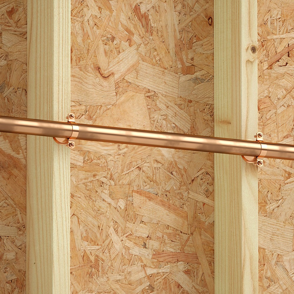 Used to mount 1-in copper tubing. Copper-plated steel. Comes with mounting screw and 2 clamping screws. Allows for a 13/16-in standoff from mounting location. Can be used in both horizontal and vertic…