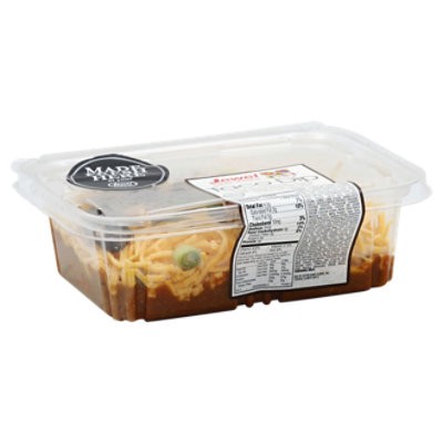 Layered dip of refried beans, seasoned cream cheese and beef dip, topped with cheddar cheese, black olives, tomatoes and scallions. Made fresh here at your Jewel Osco. US inspected and passed by Depar…