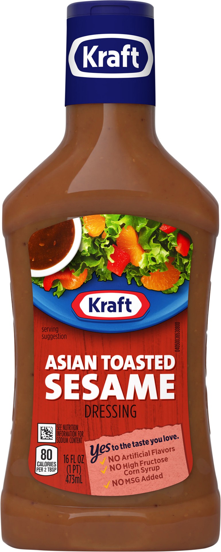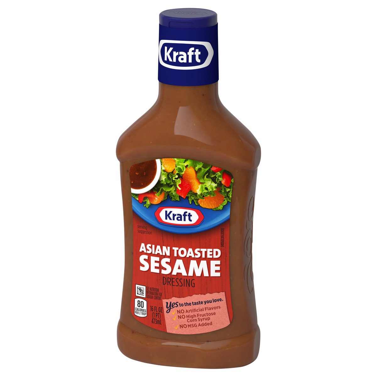 Kraft Asian Toasted Sesame Dressing adds robust flavor to almost anything. Bursting with soy sauce, toasted sesame seeds, apple cider vinegar and some ginger and garlic, our family favorite Asian dres…
