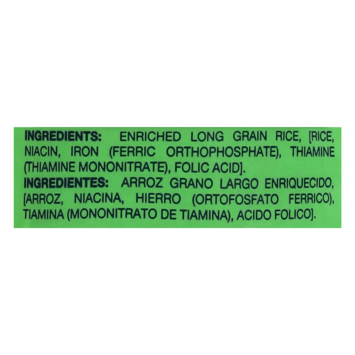 Enriched Long Grain Rice, [Rice, Niacin, Iron (Ferric Orthophosphate), Thiamine (Thiamine Mononitrate), Folic Acid].