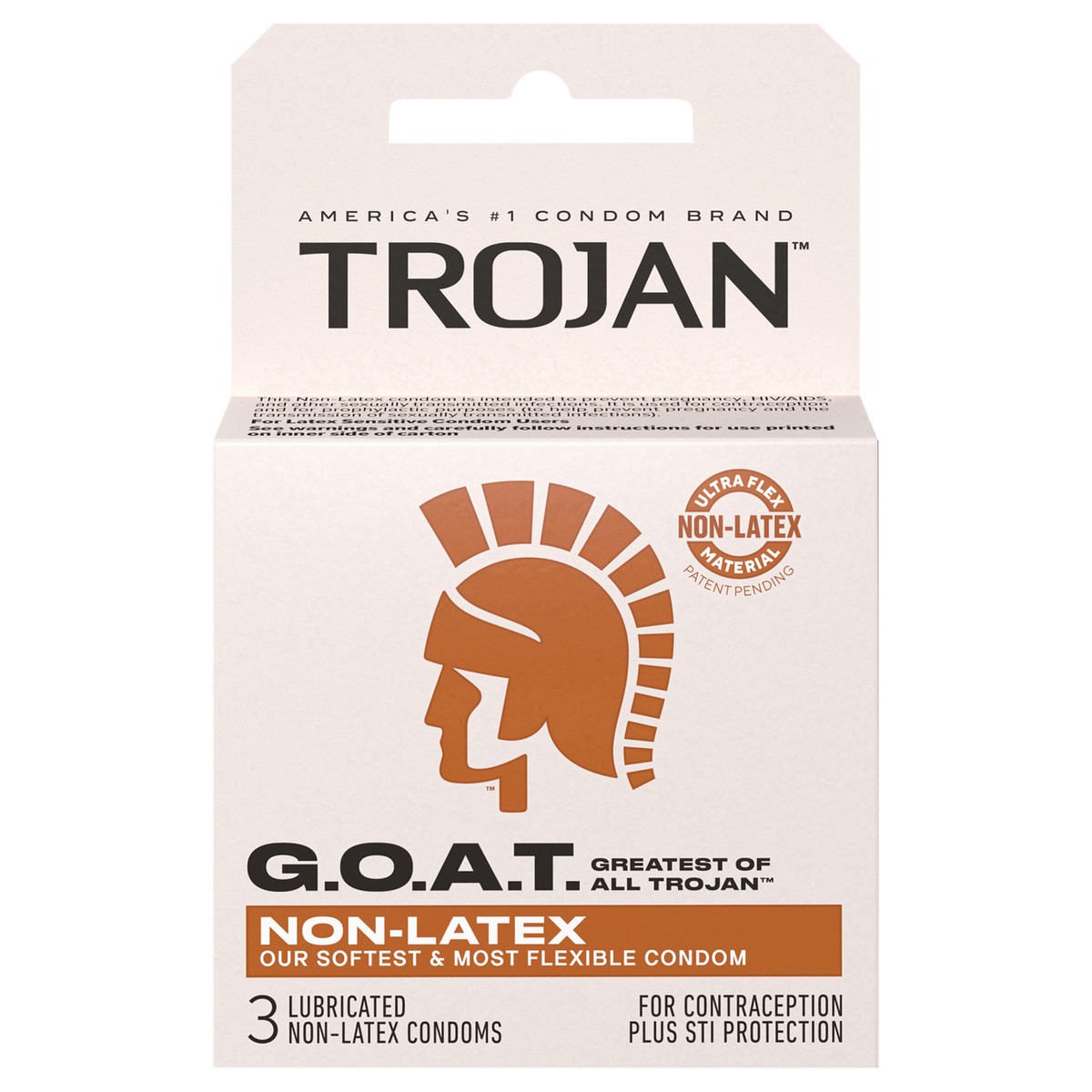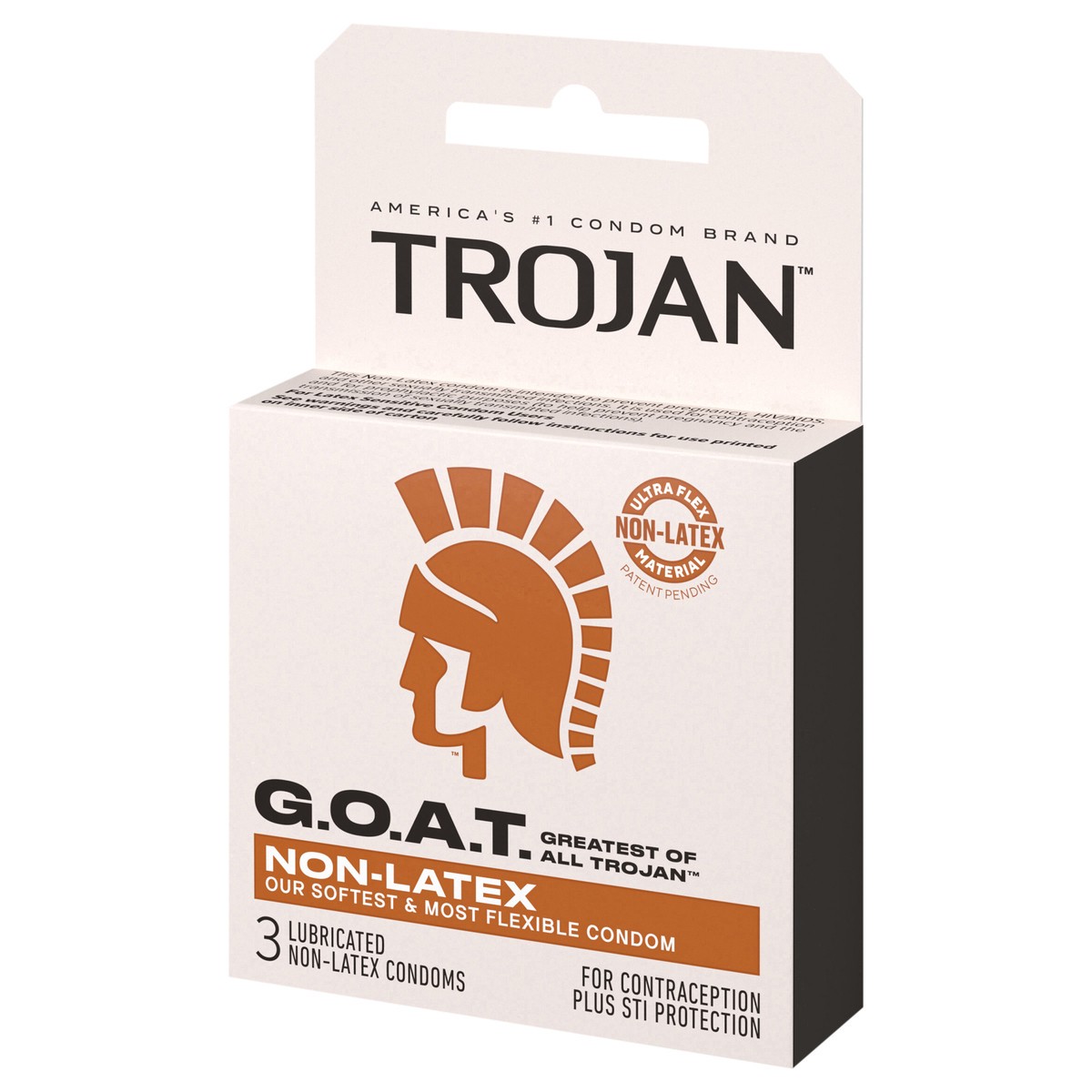 When it comes to protection and pleasure, you deserve nothing less than the best. Trojan G. O. A. T. Non-Latex Condoms are made with an innovative, patent-pending Ultra Flex Non-Latex material. It's s…