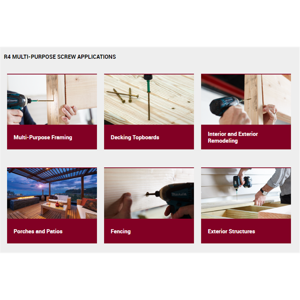 Fast Bite Tip starts fast with less force than the competition, no pre-drilling. For use in wood, particle-board, cement fiberboard, plastic, sheet metal. Precision Fit reduces wobble between R4 screw…