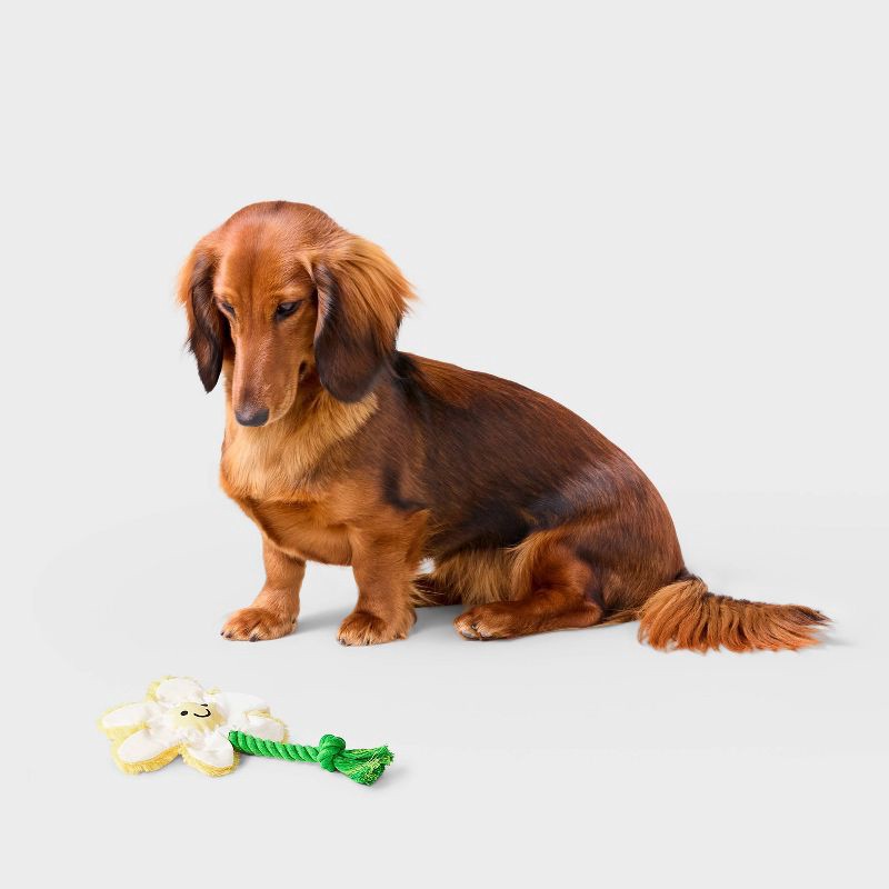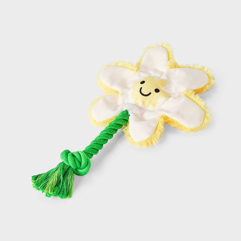 Bring a little flower power to your furry friend's toy collection with this Lily Plush Dog Toy from Boots & Barkley™. This white lily features yellow faux-fur trimming, a smiley face and a green knott…