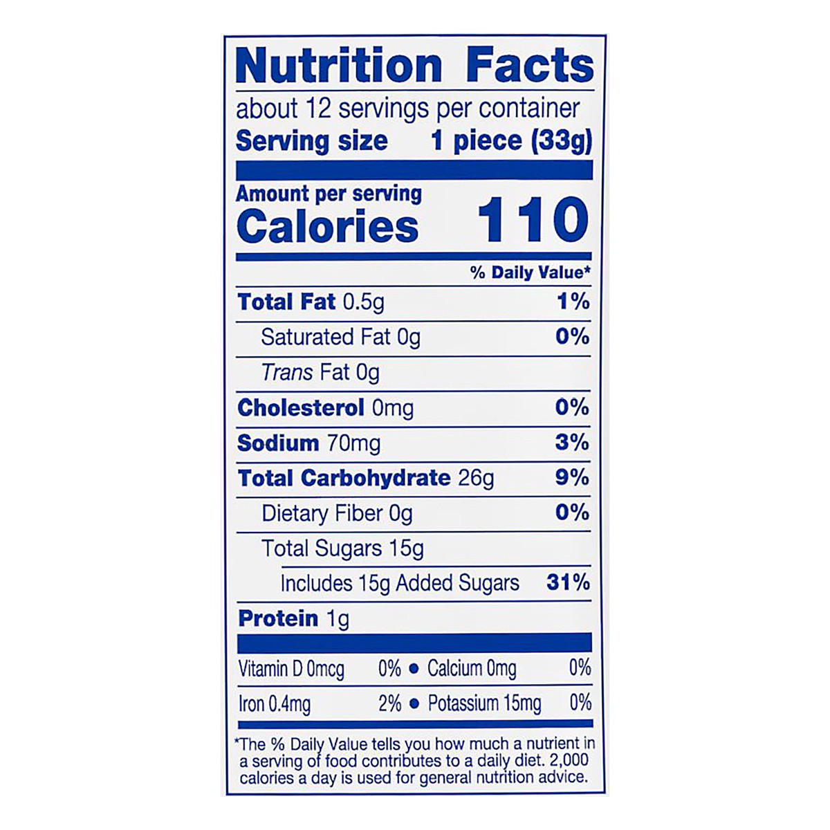 CORN SYRUP; ENRICHED WHEAT FLOUR [FLOUR; NIACIN; FERROUS SULFATE; THIAMIN MONONITRATE; RIBOFLAVIN; FOLIC ACID]; SUGAR; CONTAINS 2% OR LESS OF: PALM OIL; GLYCERYL MONOSTEARATE; SALT; CORNSTARCH; NATURA…