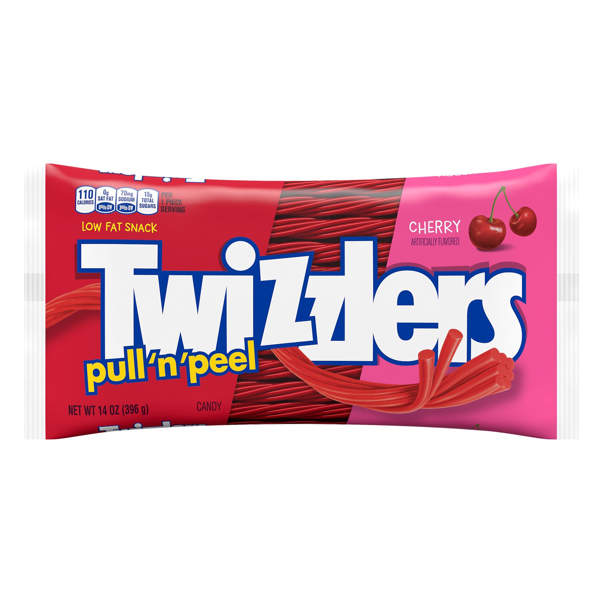They say to never play with your food, but TWIZZLERS PULL 'N' PEEL cherry-flavored chewy candy is the one exception! Grab ahold of a cherry-flavored chewy candy and untangle these treats for any momen…