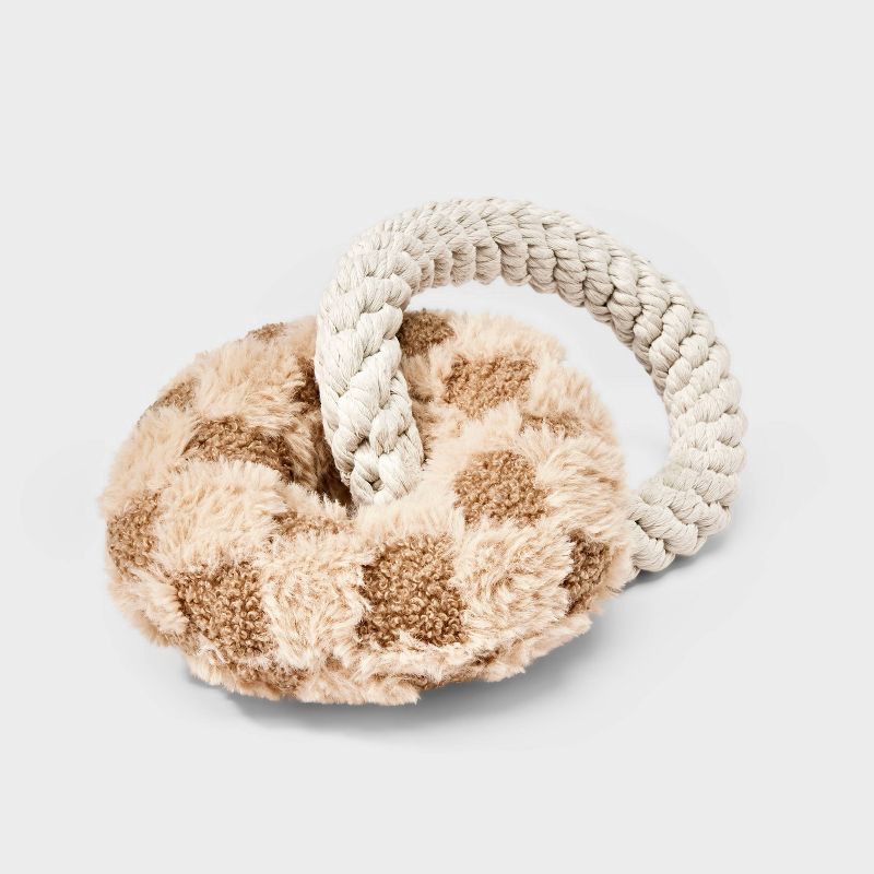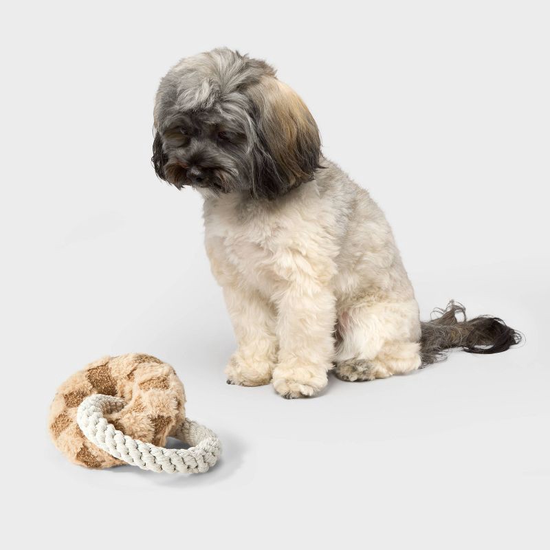 This 9.36-Inch Chain Plush with Rope Dog Toy from Boots & Barkley™ is the perfect pick for your playful pup. Featuring two interlocking rings — a brown-and-beige checkered plush ring and a white braid…