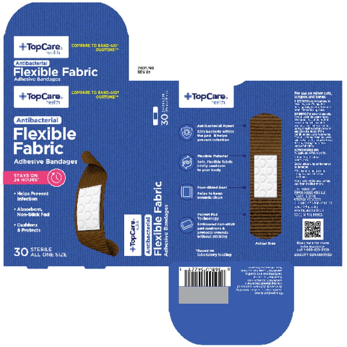 TopCare Health One Size Fabric Bandages 30 ea