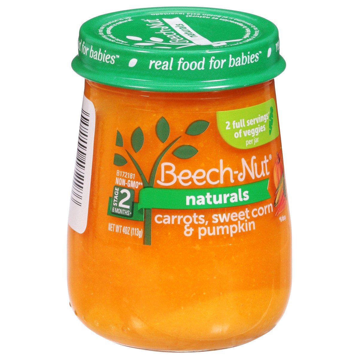 Beech-Nut Naturals Baby Food is made with simple, non-GMO ingredients. Our carrots, sweet corn & pumpkin baby food puree has no artificial preservatives, colors or flavors and no added sweeteners--jus…